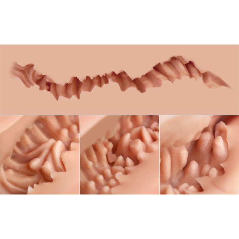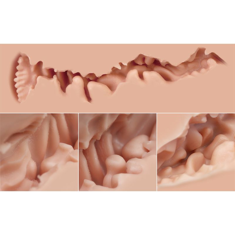 This rear entry style torso is designed as though two thighs are together and emphasises the vaginal design which slightly protrudes from between the buttocks.